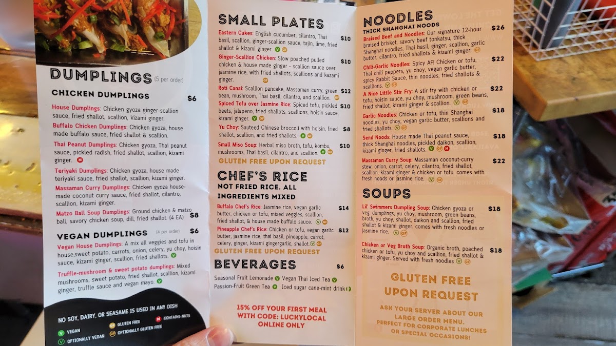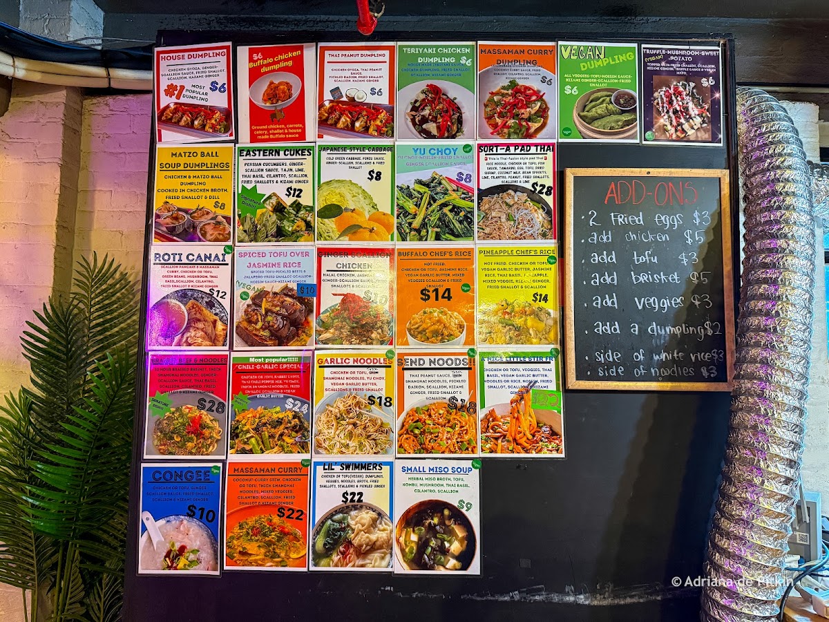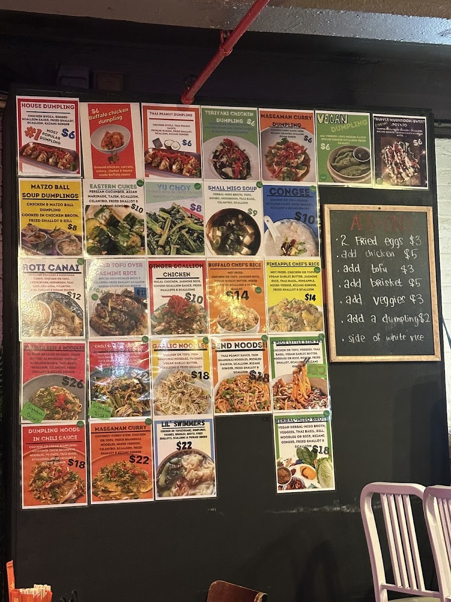 “ The whole meal was delicious, and the Matzo Ball Soup Dumplings TRULY exceeded my expectations! I can’t wait to come back. For under $80 with tip, we had an extravagant meal (two kinds of dumplings, the excellent cukes, the aforementioned soup dumplings, noodles with brisket and scallion chicken with rice and two soft drinks) with enough left over for lunch tomorrow! We’ll be back for sure! ”