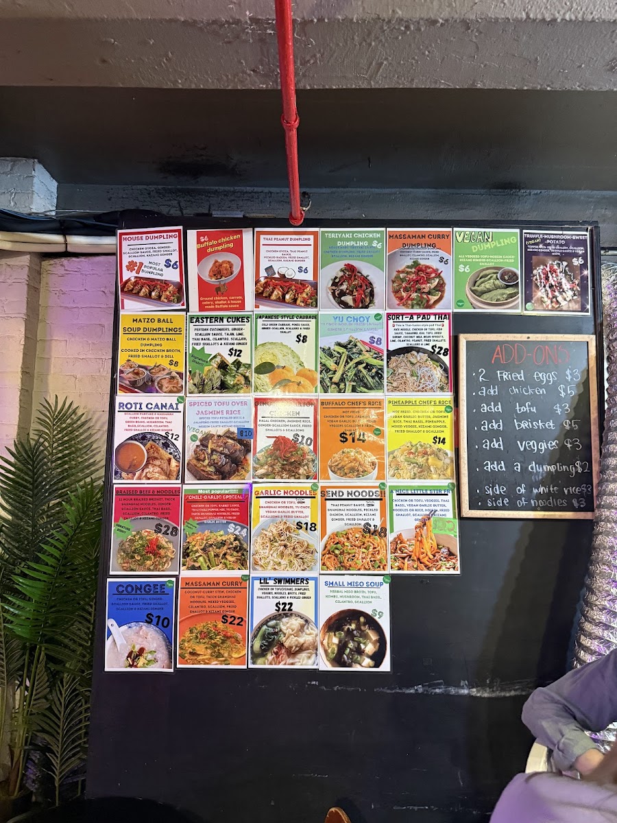 “ A cheerful, bustling noodle shop just below the bridge. If you sit outside you can listen to an occasional train pass by, and enjoy how the city hums around you. The food was good, but didn’t blow us away - I didn’t find the garlic chili noodles too garlicky and just slightly bland, but they were nicely spicy and with soy sauce they were good. The send noods was again somewhat bland but good and satisfying. We were disappointed with the Massaman curry dumplings, but I’d happily try another dumpling - they have a wide variety of options there. It’s clear everything, down to the noodles, is made fresh daily - every dish seems to have the option to choose which protein (or none!) meaning it’s highly vegetarian friendly. The prices are steep - our meal for 2 was $60 after tip, and no drinks, but the portions are massive and the plate of noodles I got was 2 meals essentially. Overall, a good spot. ”